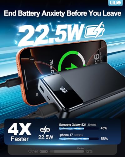 Be the first to review “LILIO Portable Charger Power Bank,60,000mAh Battery Pack, 22.5W Power Bank Fast Charging with USB Cable, Phone Charger for iPhone 17/16/15/14/13 All Series/Samsung/Android, Camping Essentials, Black”