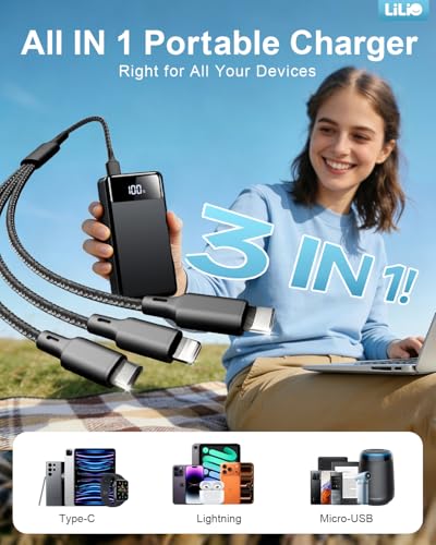 LILIO Portable Charger Power Bank,60,000mAh Battery Pack, 22.5W Power Bank Fast Charging with USB Cable, Phone Charger for iPhone 17/16/15/14/13 All Series/Samsung/Android, Camping Essentials, Black