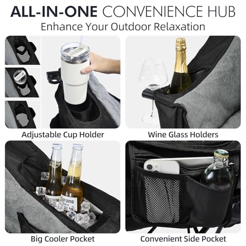 Extra Storage Space – Our foldable chairs for outside features side/back mesh pockets, along with adjustable cup holder and large insulated cooler bag. Perfectly stores drinks, snacks, and phones within easy reach. It a versatile choice for comfortable padded camping chair for adults.