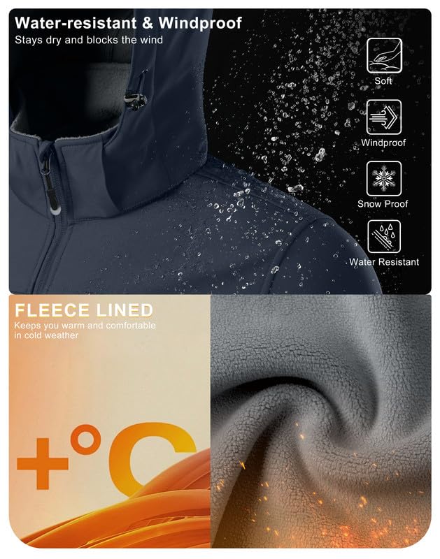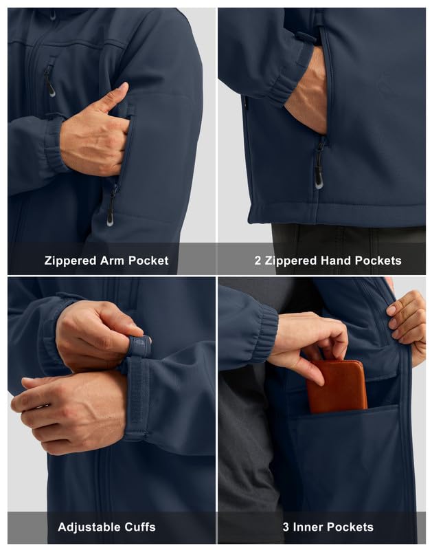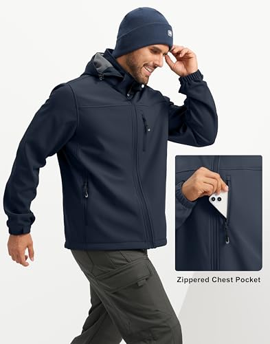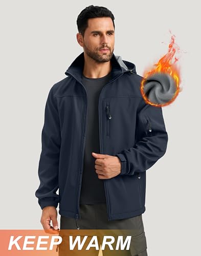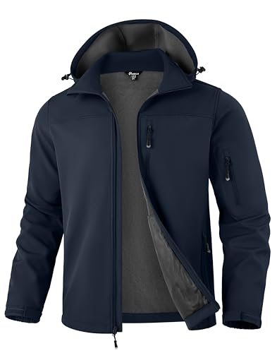 Pudolla Men’s Softshell Jacket Fleece Lined Water Resistant Hooded Winter Coats for Men Outdoor Work Hiking with Pockets
