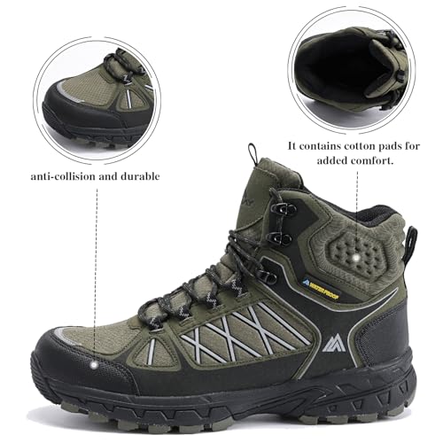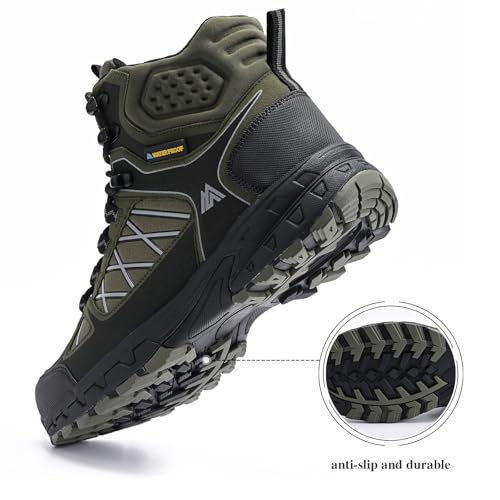 Queday Waterproof Hiking Boots Mens Lightweight Walking Shoes Daily Hike Trekking Trail Outdoor Camping Climbing