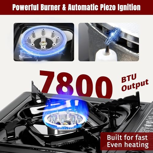 High Heat Output: The sturdy aluminum single burner features a porous annular design that delivers up to 7800 BTUs, boiling 4 cups of water in just 5 minutes. Save time and fuel with high-efficiency heating