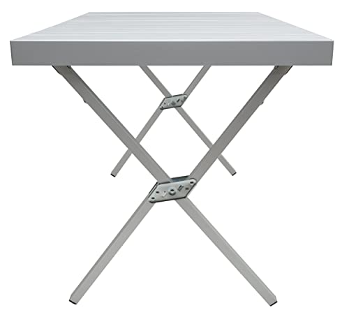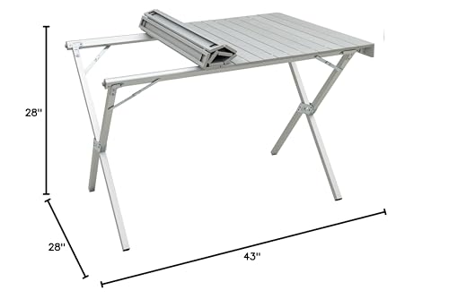DURABLE camping tables that fold up lightweight with aluminum roll-top and strong X-frame for reliable support