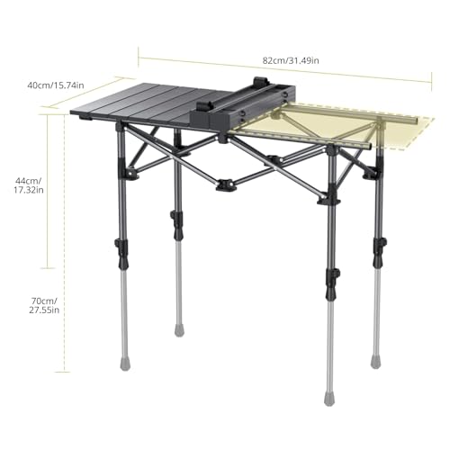 Anbte 3ft Aluminum Roll Top Camping Table, 2 Adjustable Height Camping Table Folding with Storage Net & Bag Lightweight Roll Up Table for Indoor Outdoor Backyard BBQ Patio Picnic, 32.2” X 16”, Black