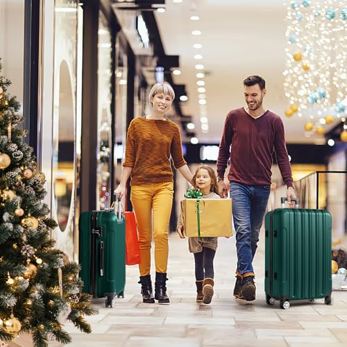 Karl home Luggage Sets 3 Piece, Hardside Carry on Suitcase Sets with Spinner Wheels & TSA lock, Portable Lightweight ABS Luggages for Travel, Business – Dark Green, 20/24/28in