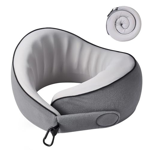 Travel Pillow, 100% Pure Memory Foam Travel Neck Pillow Airplane Neck Support Ergonomic Design for Traveling Suitable for Airplanes,Offices and Cars-Cooling Silk Grey Cover