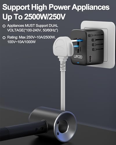 NOT a Voltage Converter: Our power plug adapter can charge ALL USB Devices anytime anywhere, such as phones, earphones, cameras, etc. But it can NOT Convert VOLTAGE for electric appliances. Max power: 100V~10A/1000W, 250V~10A/2500W, 50/60Hz. (The appliance’s power cannot exceed the maximum power of the adapter)