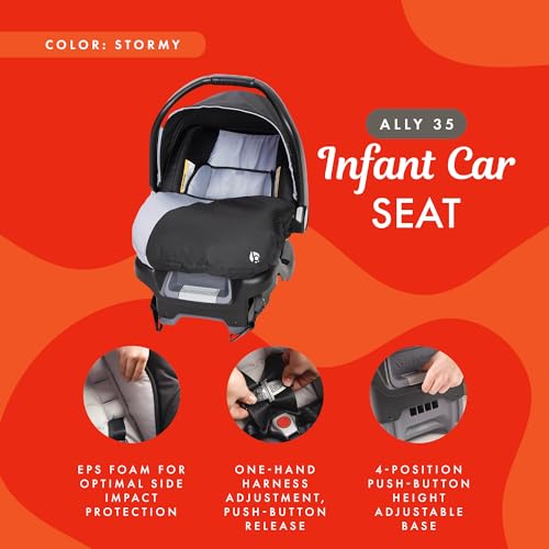 Baby Trend Ally Newborn Baby Infant Car Seat Carrier Travel System with Harness and Extra Cozy Cover for Babies Up to 35 Pounds, Stormy