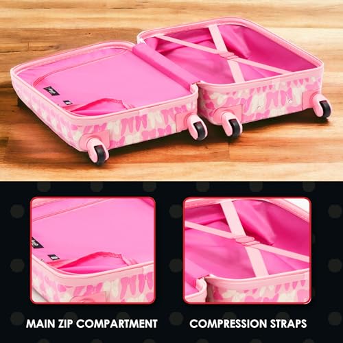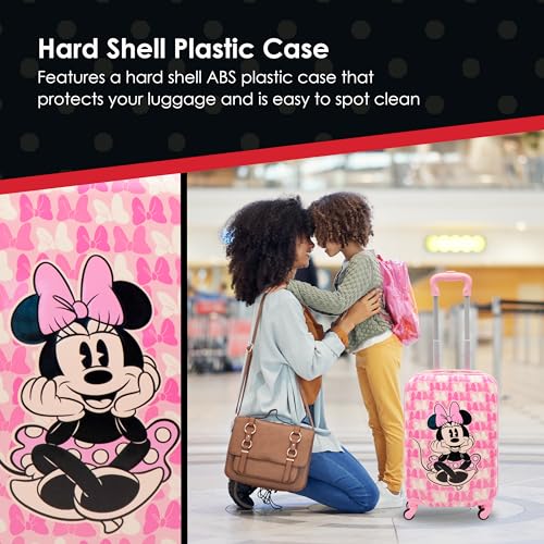 FUL Disney Minnie Mouse 21 Inch Kids Carry On Luggage, Hardshell Rolling Suitcase with Spinner Wheels, Pink-Bows
