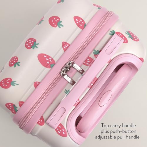 Itzy Ritzy Toddler Suitcase with Adjustable Handle, 360-Degree Spinner Wheels, 2 Interior Compartments and Hard Shell Design – Perfect Kids Luggage with Wheels for Ages 3 and Up (Strawberry)