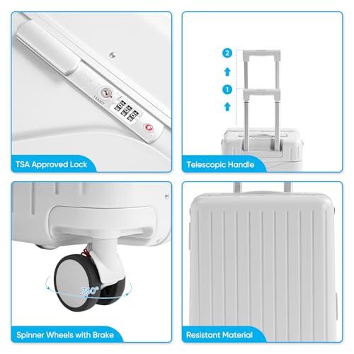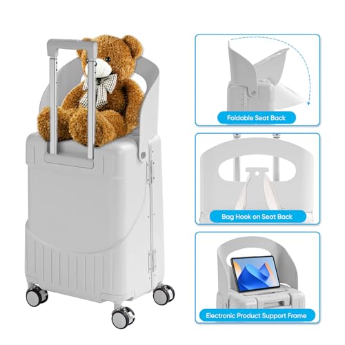 TABU 20″ Ride-on Luggage with Seat For Kids & Adults,Carry On Hardshell Ride On Suitcase with 360° Lockable Spinner and TSA Lock, White