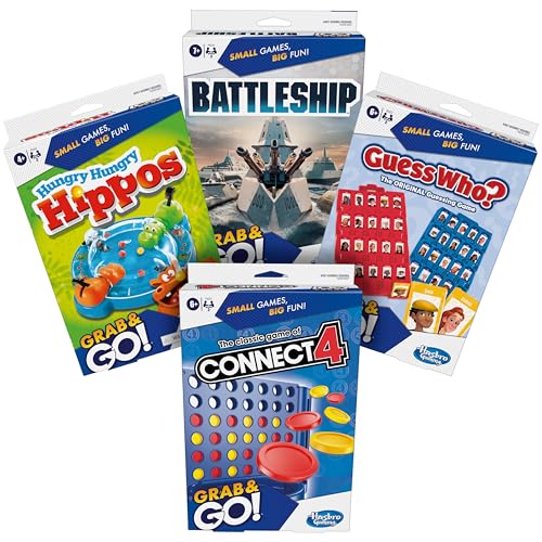 Hasbro Games Grab and Go! Bundle (4 Pack) | Kids Travel Board Games | Battleship, Connect 4, Guess Who?, Hungry Hungry Hippos Games | 2 Players I Ages 7+