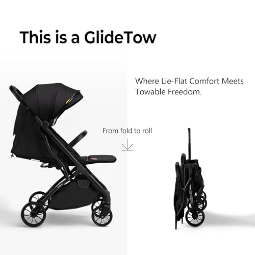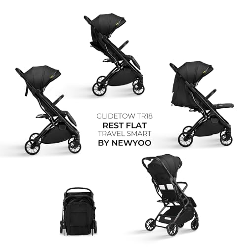 newyoo GlideTow TR18M Compact Travel Stroller for Infant, Lightweight Foldable Baby/Toddlers Stroller with Luggage Handle & Cup Holder, One-Hand Easy Fold, Lay-Flat Seat, Black
