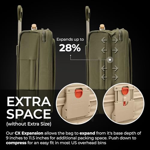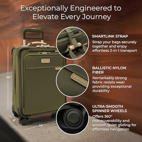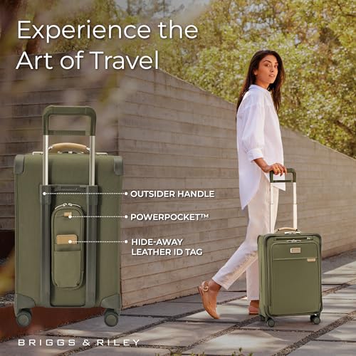 Briggs & Riley Essential 22″ Carry On Expandable Spinner – Luggage for Travel, Suitcases with Wheels, Softside Rolling Bag for Men & Women, Self-Repairing Zipper – Baseline Collection, Olive