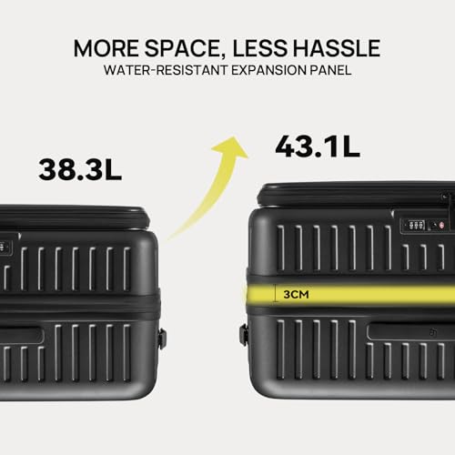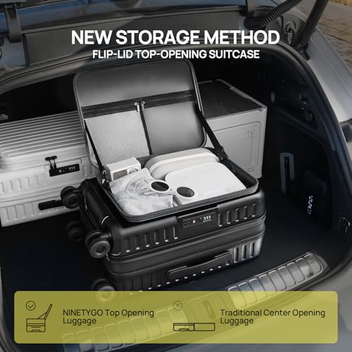 NINETYGO Top Opening Carry On Luggage 22x14x9 Airline Approved, Expandable & Lightweight, Scratch Resistant PC Hardside with Deep Cabin Design, TSA Lock & 360° Spinner Wheels(Dark Black, Alps)