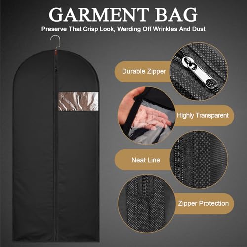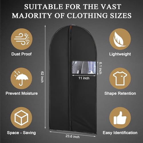 62-Inch Garment Bags Covers,Hanging Clothes Bag, Suit Cover Bags with Clear Window for Hanging Closet Clothes Storage and Travel (Black)