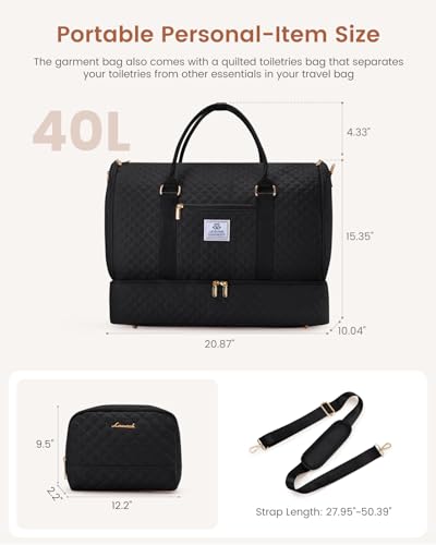 LOVEVOOK Convertible Garment Bag for Travel with Shoe Pouch, Carry On Garment Duffel Bag with Toiletry Bag, 2 in 1 Hanging Suitcase Suit Bag, Waterproof Weekender Bag for Women Travel, Wedding, Black