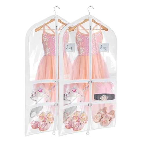 Univivi Clear Garment Bags for Dance Costumes, 40 Inch Dance Costume Garment Bags for Dancers, with 4 Medium Clear Zipper Pockets and 1 Large Back Zippered Pocket (2 Pack)