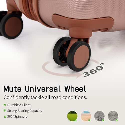 【8 Smooth Rolling Silent Wheels】Suitcase sets with 8 spinner wheels use high flat and straight shock-absorbing universal wheels to make their travel luggage sets quieter and smoother, ensuring 360° free rotation, Embrace superior directional control for perfect maneuverability on the go