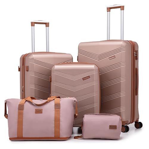 Expandable Luggage Sets 5 Piece, Hard Case Suitcase Set with Spinner Wheels,22x14x9 Airline Approved Carry on,Lightweight Durable Suitcase with TSA Lock (Champagne Gold)