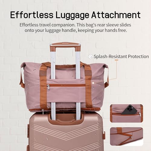 【Duffel & Toiletry Bag Set】This set is an extended duffel bag and a toiletry bag. Both the duffel bag and the toiletry bag are crafted from gentle, water-resistant polyester fabric. The duffel bag is designed with a back sleeve for effortless attachment to the retractable luggage handle and is equipped with multiple functional pockets, catering to diverse travel requirements.