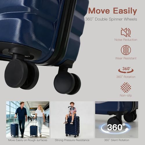 Smooth and Silent Multi-directional Spinner Wheels:with the 360° spinner duoble wheels, the large carry on luggage moves quietly and smoothly. It passed 100% perfect drop test and a walk test (The professional luggage quality test, the suitcase can load 33lb and and walks 40km at a speed of 10km/h ).Best choice for long-term travel and business trip.