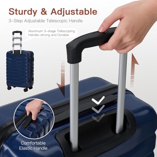 Luggage Sets 4 Pieces with Spinner Wheel & SBS Zipper,Travel Suitcase PC Hardshell Luggage with TSA Lock,Lightweight Suitcase Set(Dark Blue,14in/20in/24in/28in)