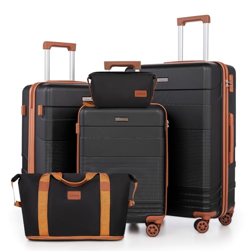 Luggage Sets 5 Piece with Spinner Wheels, Lightweight Hardshell Suitcases Set with Lock for Men and Women, Carry on Luggage Travel Set with Durable ABS Hard Case