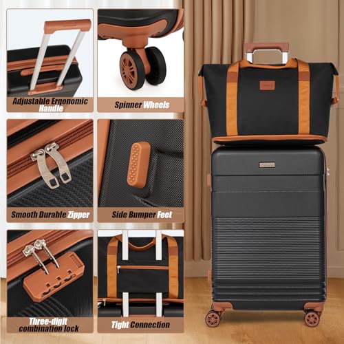 【5-Piece Luggage Sets】: This luggage sets includes three sizes (20, 24, and 28 inches), And extended duffel bag, and a toiletry bag,suitable for various travel needs. Each suitcase is equipped with 360-degree spinner wheels, providing smooth mobility and easy handling in airports and on the go.