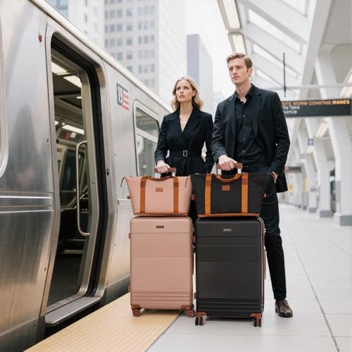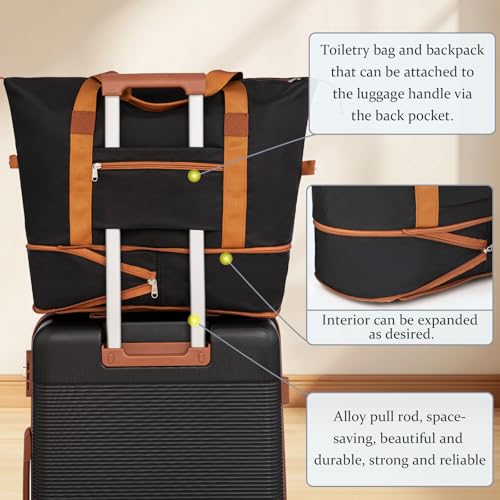 【Versatile and Space-Optimized Design】: Each luggage set features multiple interior compartments and compression straps, plus an expandable carry-on bag and toiletry bag for easy organization. Whether you’re on a long trip or a short business trip, they offer ample storage space and efficient organization.