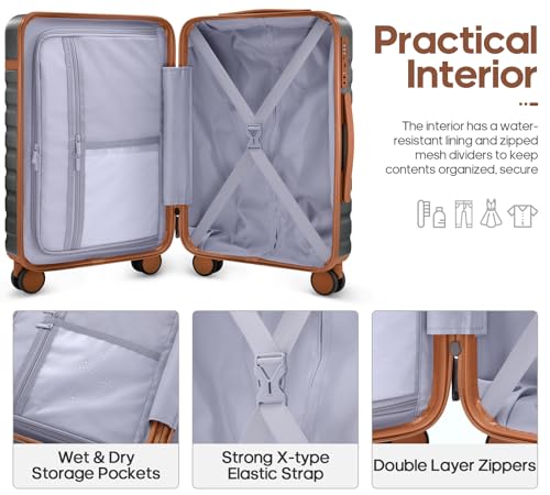Hardshell Suitcase : 20inch Carry on luggage is crafted from Polycarbonate (PC) exterior offers extreme durability with a texture that reduces the visibility of scratches. Details such as the ergonomic 3-level retractable easy-grip top handle, and the double soft rubber carry handles bring maximum comfort and an easy carrying experience.
