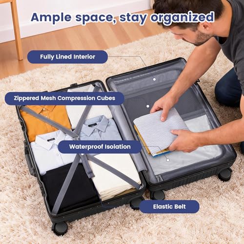 Seamless & Secure Design: Features a sturdy aluminum frame without zippers for enhanced durability and a sleek look, equipped with a TSA-approved combination lock to keep your belongings safe during airport inspections