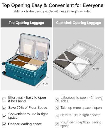 【Top Opening Luggage for Effortless Access Anywhere】This 24 inch luggage delivers an ultra-convenient experience-you can quickly open it with just one hand ,the top opening check in luggage design also offers convenience to elderly users or people with limited strengthit’s and also especially suitable for tight spaces like aisles, allowing you to take out or put back items quickly and easily, unlike traditional clamshell luggage that requires full unfolding to use