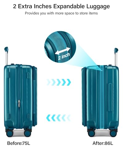 【Expandable Luggage】The hard case luggage with expandable design can increase storage space by up to 2″, flexibly meeting your needs. The rolling suitcase features a deep, integrated main compartment and multiple storage compartment , so you can safely store large items while keeping all your belongings in their proper places, neat and orderly. We belive this medium suitcase will create a stress-free, organized packing experience for you