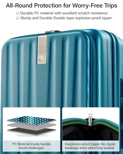 Hanke 24 Inch Expandable Luggage Top Opening Checked Bag Luggage Hard Shell Suitcases with Wheels Lightweight Travel Luggage Medium Suitcase with Lock for Woman Men-Caribbean Blue