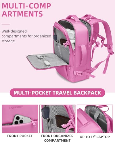 Large Capacity Travel Backpack: This large travel backpack features with padded electronic pocket fits up to 17.3″ laptop and 12.9’’ ipad. Front compartment is for little gear such as phone, earphone. The large inside pocket has internal compression elastic straps. The luggage backpack is lightweight with adjustable shoulder straps and a breathable air-mesh back panel, plus two padded grab handles (top and side) for easy retrieval from overhead bins