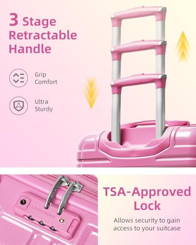 LARVENDER Carry on Luggage 22x14x9 Airline Approved Hardshell Suitcase with Wheels TSA Lock, PC+ABS Lightweight Suitcase Set for Women with Travel Backpack, Glossy Berry