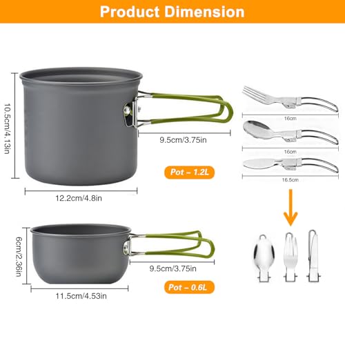 Durable and Efficient Cookware: Crafted with durable anodized aluminum, our camping pots and pans set ensures even heat distribution and easy handling. This essential camping gear is perfect for backpacking or camping trips, making outdoor cooking a breeze.