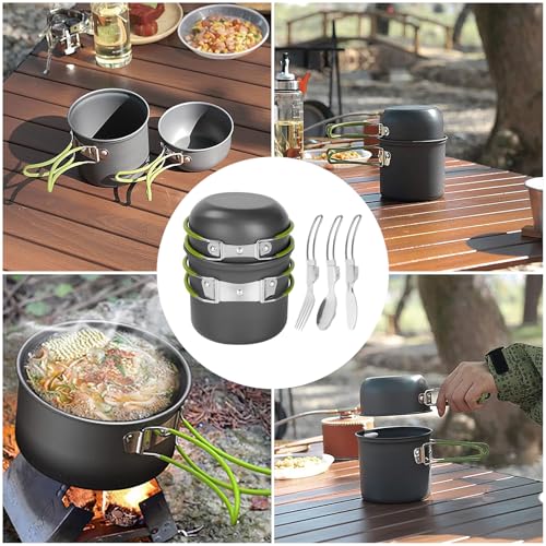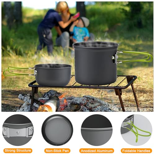 Camping Cookware Mess Kit Backpacking Pot Gear Camping Cooking Pots and Pans Set Camp Kitchen Equipment Accessories Green