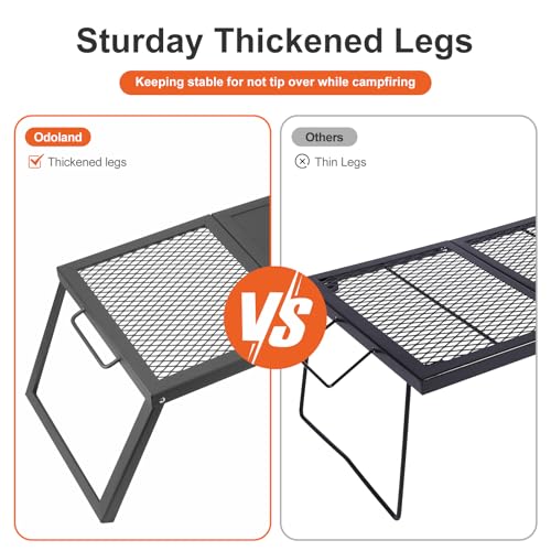 Odoland Folding Campfire Grill, Heavy Duty Steel Mesh Grate with Folding Legs and Storage Bag, Portable Camping Grates, Over Fire Pit Grill Rack for Outdoor Cooking and Bonfire