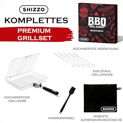 Complete High-Quality Grilling Value Set – Conquer the grill with your own tools to help you prepare your famous BBQ recipes. The SHIZZO Set includes a grill basket, basting brush, Stainless Steel Skewers, and even a portable case for a BBQ away from home.