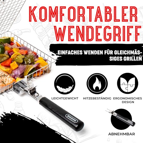 Safer and Easier Grilling – The SHIZZO grill basket features a long handle and a secure locking mechanism that allows you to flip your BBQ safely and easily with no food waste. A safer, easier, and more satisfying grilling experience.