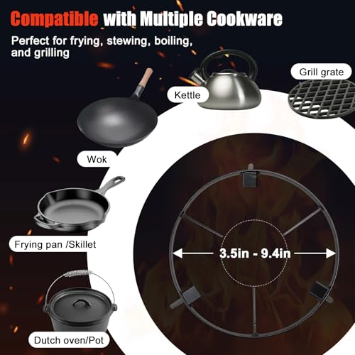 High Heat Resistance – Withstands up to 1500°F thanks to a durable black powder coating, ensuring this dutch oven stand longevity even under extreme heat.