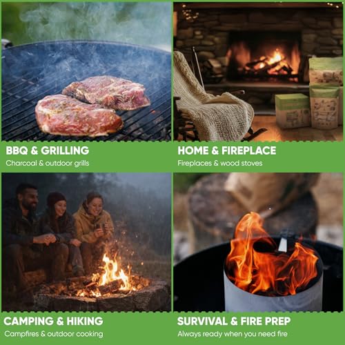 Multi-purpose: our fire starters are suitable for indoor and outdoor flames. Whether you need fire starters for fireplace, grill fire starter, wood stoves, fire pits, pizza oven, or a campfire starter, we’ve got you covered. Easily kindling large firewood, brown coal, briquettes, eco-pea and pellets.