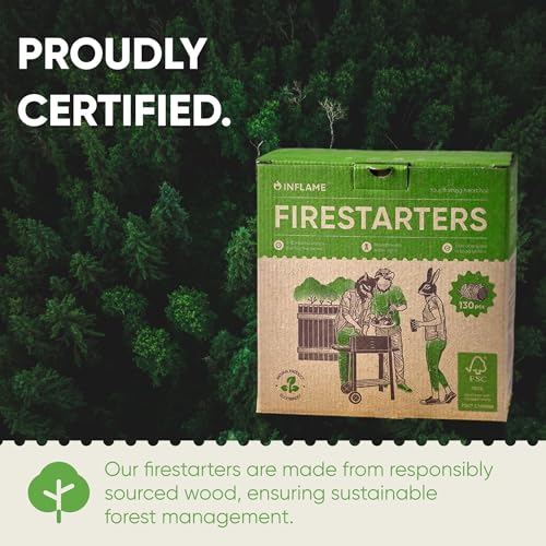Inflame Fire Starters 130 pcs Fire Starters for Campfires, Grill, BBQ, Fireplace, Woodstove – Charcoal Starter – Waterproof, Weather-Resistant – Natural Wood Fireplace Starters