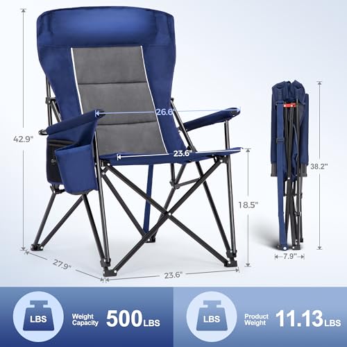 Bigger & Wider Design: Our newly upgraded camping chair is larger and wider than most on the market. With dimensions of 42.91*29.33*26.57in, it’s perfect for bigger folks and can support up to 500 lbs.