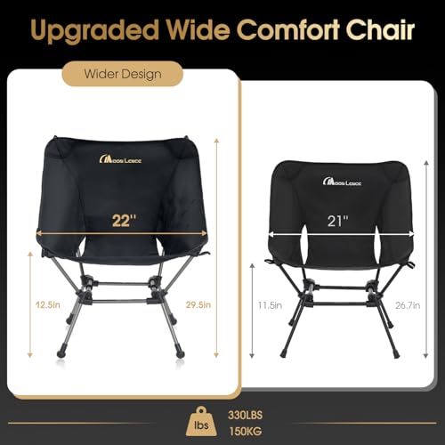 MOON LENCE Portable Camping Chair Plus, Upgraded Comfort & Size, Compact and Lightweight Still, Folding Chair for Backpacking & Hiking, 330Lbs Capacity (Black 2 Pack)
