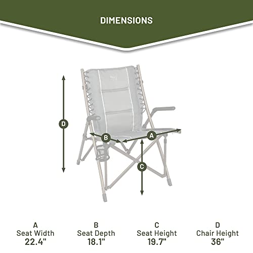Timber Ridge Bungee Folding Camping Chairs for Adults, Heavy Duty Collapsible Padded Chair with Armrests Cup Holder, Foldable Outdoor Lounge Chairs for Beach, Fishing, Lawn, Supports 300 lbs, Grey