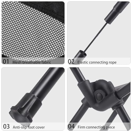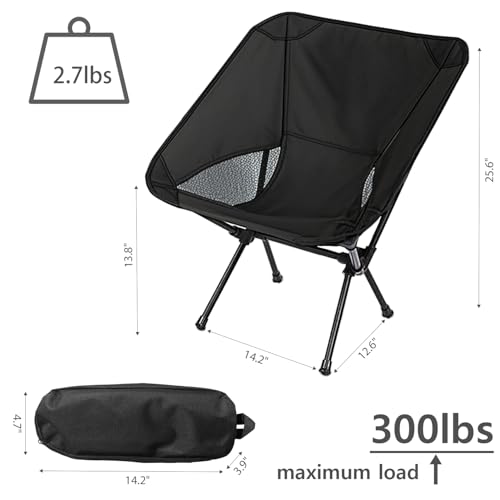 Wind Tour Portable Camping Chair Lightweight Foldable Outdoor Chair for Hiking Camp Backpacking Lawn Beach Fishing Picnic with Carry Bag (Black)