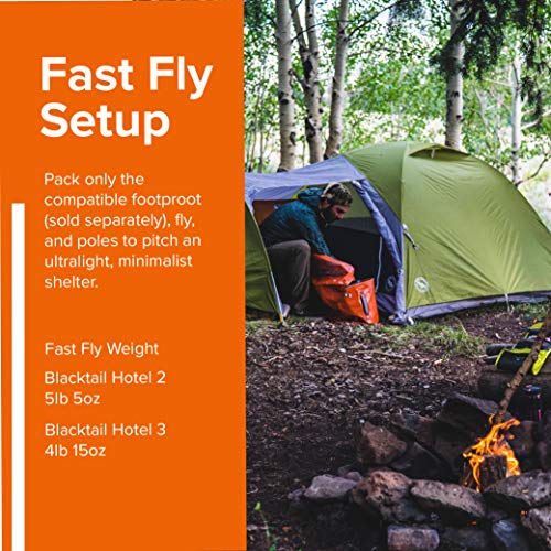 BELLS & WHISTLES – Stash helmet on exterior tent body using elastic webbing and the daisy-chain webbing loops on the fly exterior for drying wet clothes and gear; Extended footprints (sold separately) creates a vestibule floor for dry, dirt-free changing and gear storage. Maximized storage options with oversized ceiling pocket and multiple interior loops for use with gear lofts, accessories and mtnGLO Tent & Camp Lights.